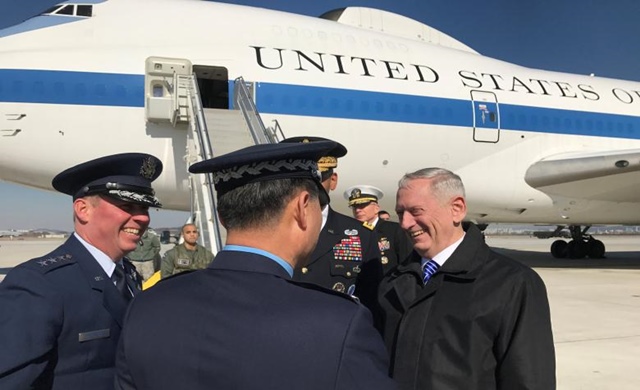 พล.อ.แมททิสบอกกับผู้สื่อข่าวก่อนที่เครื่องบินจะลงจอดที่สนามบินของเกาหลีใต้ว่า เขาจะหารือเรื่องการติดตั้งระบบทาดในเกาหลีใต้อย่างแน่นอน ก่อนหน้านี้ ทางการเกาหลีใต้และสหรัฐต่างอ้างว่า ระบบทาดได้รับการออกแบบมาเพื่อป้องกันภัยคุกคามจากอาวุธนิวเคลียร์และขีปนาวุธของเกาหลีเหนือ แต่จีนไม่เห็นด้วย โดยระบุว่า การติดตั้งระบบทาดจะส่งผลกระทบต่อความมั่นคงในภูมิภาค ทำให้เกิดกระแสเรียกร้องให้ชะลอหรือยกเลิกแผนการติดตั้งระบบดังกล่าวจากแกนนำฝ่ายค้านในเกาหลีใต้