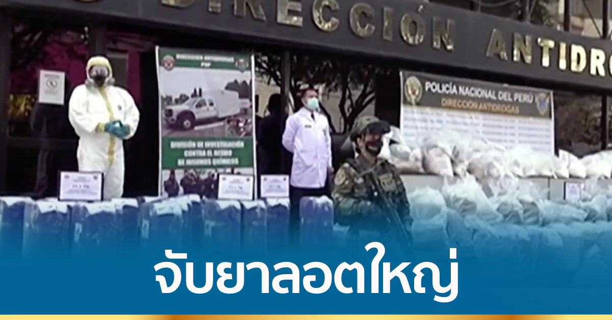 เปรู 17 ต.ค.- เจ้าหน้าที่เปรู แถลงข่าวจับยาเสพติดลอตใหญ่ ประเภทกัญชาและโคเคน หนักรวมเกือบ 5 ตัน หากรอดเข้าไปตลาดมืด จะมีมูลค่าสูงถึง 6.6 พันล้านบาท