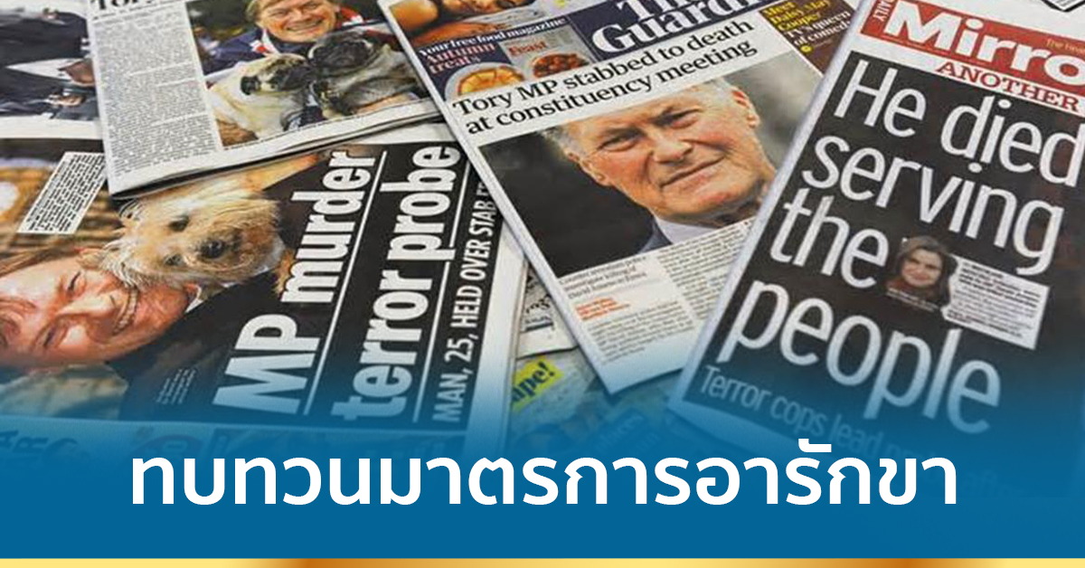 ลอนดอน 17 ต.ค.- รัฐบาลอังกฤษสั่งทบทวนมาตรการอารักขาสมาชิกสภาผู้แทนราษฎร (สส.) หลังเกิดเหตุ สส.ถูกแทงเสียชีวิตในเหตุการณ์ที่ตำรวจระบุว่า เป็นการก่อการร้ายที่อาจโยงกับแนวคิดสุดโต่ง