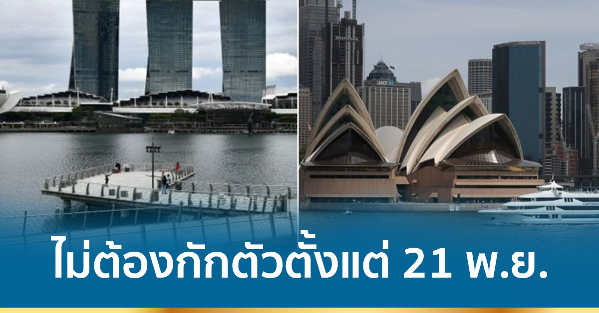 สิงคโปร์ 1 พ.ย. – ชาวสิงคโปร์ที่ฉีดวัคซีนป้องกันโรคโควิดครบโดสจะเดินทางไป 2 รัฐใหญ่ของออสเตรเลียและกลับมาสิงคโปร์ได้โดยไม่ต้องกักตัวตั้งแต่วันที่ 21 พฤศจิกายนนี้