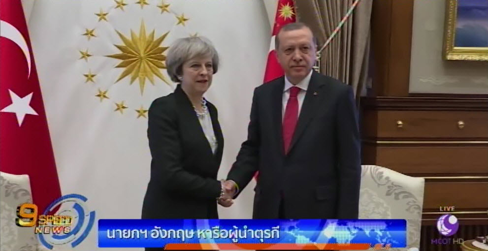 นางเทเรซา เมย์ นายกรัฐมนตรีของอังกฤษ พบปะกับประธานาธิบดีเรเจพ ทายยิพ แอร์โดอาน ผู้นำตุรกี ที่กรุงอังการา หลังเดินทางเยือนตุรกีอย่างเป็นทางการในวันนี้ เพื่อหารือถึงข้อตกลงการค้า หลังจากที่สหราชอาณาจักรถอนตัวจากสหภาพยุโรป หรือ อียู แล้ว รวมถึงการกระชับความร่วมมือด้านความมั่นคง