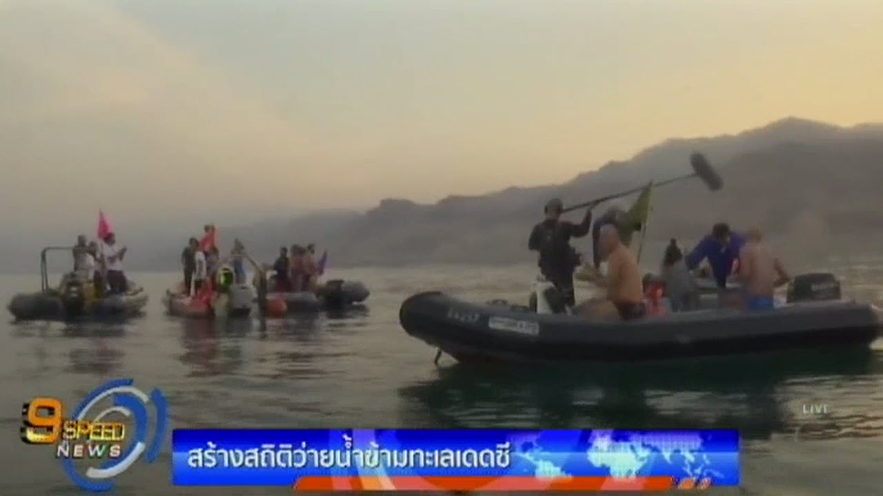 จอร์แดน 15 พ.ย.-กลุ่มนักว่ายน้ำ 25 คน ซึ่งมาจากหลายประเทศร่วมกันสร้างสถิติว่ายน้ำข้ามทะเลเดดซี จากฝั่งจอร์แดนไปยังอิสราเอลเป็นครั้งแรกของโลก ซึ่งต้องใช้เวลาราว 7 ชั่วโมง เพื่อรณรงค์ให้ผู้คนสนใจปัญหาความเสื่อมโทรมทางธรรมชาติ ซึ่งปัจจุบันพบว่าพื้นที่ทะเลเดดซีมีการหดตัวลงถึง 1 ใน 3 ของขนาดเดิม และบางปีน้ำในทะเลแห้งลงอย่างรวดเร็ว ทำให้เกิดหลุมยุบตามมา ซึ่งจะเป็นอันตรายต่ออาคารและที่พักอาศัยในบริเวณใกล้เคียงได้.-สำนักข่าวไทย