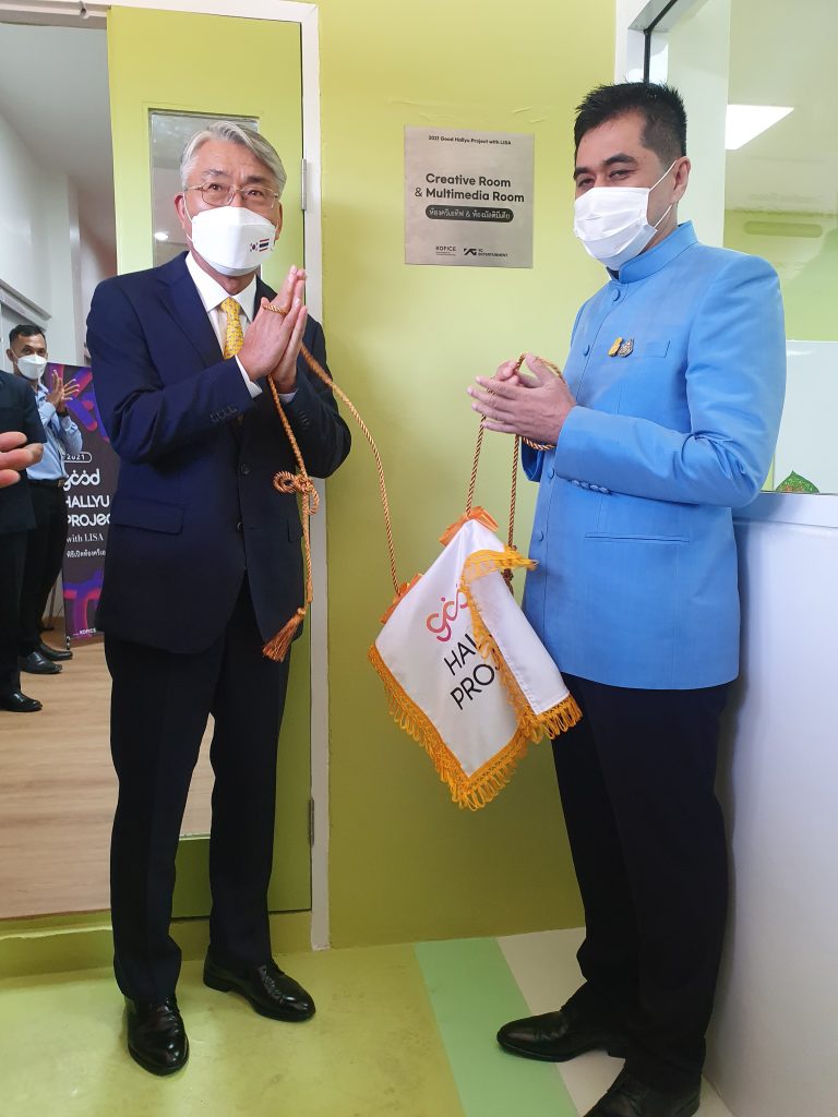 โอกาสนี้ มูลนิธิเกาหลีเพื่อการแลกเปลี่ยนวัฒนธรรมระหว่างประเทศ (KOFICE) และบริษัท YG Entertainment ต้นสังกัดของ ‘ลิซ่า’ ได้ร่วมมอบห้องครีเอทีฟและห้องสื่อสันทนาการให้กับโรงเรียนโนนสุวรรณพิทยาคมด้วย