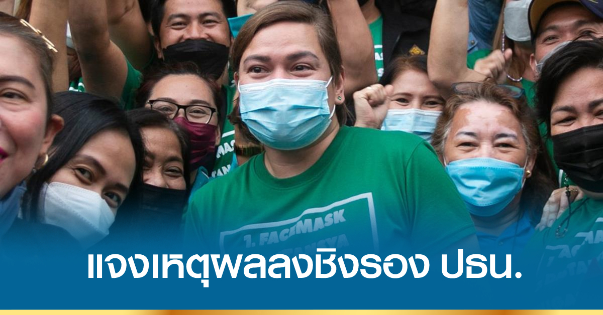 ดูเตอร์เต-การ์ปิโอ ถอนตัวจากการลงสมัครชิงตำแหน่งนายกเทศมนตรีเมืองดาเวาอีกสมัย เมื่อวันที่ 9 พฤศจิกายน เพื่อเปิดทางให้น้องชายที่เป็นรองนายกเทศมนตรีสมัครแทน เธอลาออกจากพรรคที่ตั้งขึ้นเอง แล้วย้ายมาสังกัดพรรคลาคาส-ซีเอ็มดี เมื่อวันที่ 11 พฤศจิกายน และหลังจากที่ยื่นใบสมัครชิงตำแหน่งรองประธานาธิบดี เมื่อวันที่ 13 พฤศจิกายน ก็ได้รับเลือกจากพรรคพีเอฟพี (PFP) ที่ตั้งขึ้นโดยกลุ่มสนับสนุนประธานาธิบดีดูเตอร์เต ในปี 2561 ให้เป็นผู้สมัครคู่ของนายเฟอร์ดินันด์ มาร์กอส จูเนียร์ วัย 64 ปี บุตรคนรองที่เป็นบุตรชายคนเดียวของอดีตประธานาธิบดีเฟอร์ดินันด์ มาร์กอส นายมาร์กอส จูเนียร์ ในฐานะหัวหน้าพรรคพีเอฟพี ได้รับการเสนอชื่อจากพรรคให้ชิงตำแหน่งประธานาธิบดีปีหน้า แต่ยังไม่มีผู้สมัครคู่ชิงรองประธานาธิบดีอย่างเป็นทางการ.-สำนักข่าวไทย