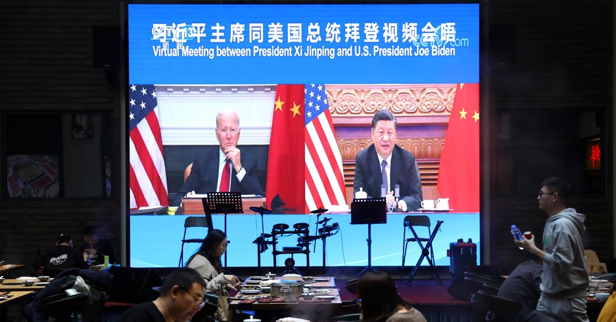 ผู้นำสองมหาอำนาจของโลกพบหน้ากันทางออนไลน์เป็นครั้งแรก นับตั้งแต่ประธานาธิบดีไบเดนรับตำแหน่งในเดือนมกราคมปีนี้ การหารือนานกว่า 3 ชั่วโมงมีขึ้นในค่ำวันจันทร์ตามเวลาสหรัฐ ตรงกับเช้าวันอังคารตามเวลาจีน ทำเนียบขาวสหรัฐแถลงหลังเสร็จสิ้นการประชุมว่า ประธานาธิบดีไบเดนได้แสดงความกังวลเรื่องแนวทางปฏิบัติของจีนในเขตปกครองตนเองซินเจียงอุยกูร์ เขตปกครองตนเองทิเบต และเขตบริหารพิเศษฮ่องกง รวมทั้งเรื่องสิทธิมนุษยชนอย่างกว้าง ๆ พร้อมกับย้ำว่า สหรัฐยังคังยึดมั่นต่อนโยบายจีนเดียว และคัดค้านอย่างแข็งขันต่อความพยายามแต่ฝ่ายเดียวที่จะเปลี่ยนแปลงสถานะปัจจุบัน หรือสั่นคลอนสันติภาพและเสถียรภาพข้ามช่องแคบไต้หวันที่กั้นไต้หวันกับจีน ทำเนียบขาวระบุด้วยว่า ผู้นำทั้งสองรับปากจะร่วมมือกันในประเด็นพลังงานและสภาพภูมิอากาศ