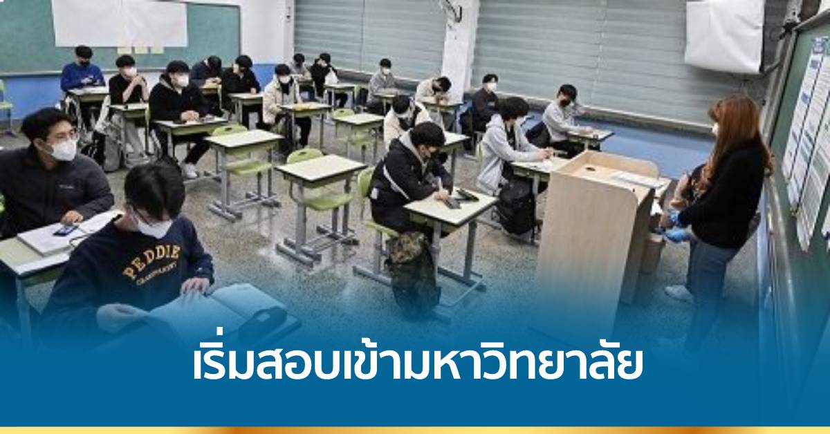 นักเรียนที่เข้าสอบเอนทรานซ์ในปีนี้ไม่ต้องเจอกับปัญหาการเลื่อนสอบและความไม่แน่นอนที่เป็นผลมาจากการระบาดของโควิด-19 เหมือนเมื่อปีที่แล้วที่เป็นการสอบในยุคโควิดเป็นครั้งแรก แต่มาตรการเข้มในการป้องกันการระบาดของเชื้อไวรัสอาจจะมีผลกระทบกับคะแนนในการทดสอบความสามารถด้านการศึกษาระดับอุดมศึกษา หรือ College Scholastic Ability Test (CSAT) หรือ “ซูนึง” ในภาษาเกาหลี ซึ่งถูกมองว่ามีความจำเป็นสำหรับการหางานทำในบริษัทชั้นนำของประเทศได้ การสอบเข้าศึกษาต่อในระดับมหาวิทยาลัยของประเทศเกาหลีใต้จะจัดขึ้นเป็นเวลา 1 วัน และจัดขึ้นปีละ 1 ครั้งเท่านั้น กระทรวงการศึกษากล่าวว่า ในปีนี้ นักเรียนมัธยมปล่าย ผู้ที่จบการศึกษาไปแล้วและบุคคลอื่น ๆ รวมแล้วมากกว่า 509,000 คน เข้าร่วมในการสอบ ซึ่งแบ่งออกเป็น 5 ส่วนด้วยกัน โดยสนามสอบจัดขึ้นทั่วประเทศเป็นจำนวนทั้งสิ้น 1,251 แห่ง ตั้งแต่ในช่วงเช้าวันนี้ ซึ่งเป็นวันสอบสำคัญ มีความพยายามให้ความช่วยเหลือผู้เข้าสอบ ซึ่งกลายเป็นประเพณีปฎิบัติกันไปแล้ว โดยตลาดการเงินเปิดทำการช้ากว่าปกติ 1 ชั่งโมงเพื่อบรรเทาการจราจรที่ติดขัด เครื่องบินพาณิชย์จะระงับการบินในช่วงบ่าย เครื่องบินรบของทั้งเกาหลีใต้และกองทัพสหรัฐจะหยุดบิน การซ้อมรบด้วยการใช้กระสุนจริงจะถูกระงับตลอดทั้งวัน.-สำนักข่าวไทย