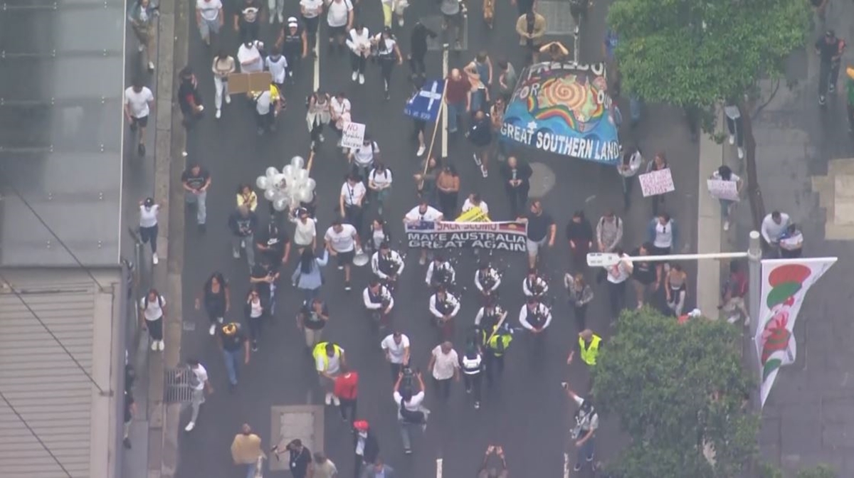 ส่วนในนครซิดนีย์ กลุ่มผู้ต่อต้านวัคซีนก็พากันรวมตัวประท้วงที่สวนสาธารณะไฮด์ปาร์ก ก่อนเคลื่อนขบวนไปตามถนนสายต่างๆ ในนครซิดนีย์เช่นกัน. – สำนักข่าวไทย