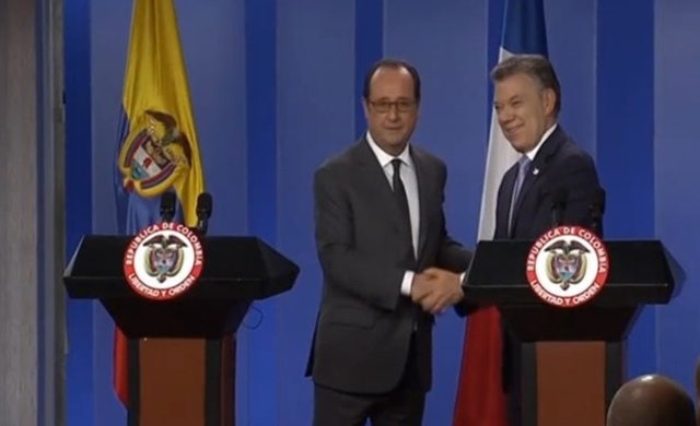 ครั้งนี้นับเป็นการเยือนในระดับประธานาธิบดีฝรั่งเศสครั้งแรกที่โคลอมเบียในรอบ 28 ปี ประธานาธิบดีโอลลองด์ได้รับการต้อนรับจากประธานาธิบดีฆวน มานวยล์ ซานโตสผู้นำโคลอมเบียอย่างสมเกียรติ คาดว่าผู้นำฝรั่งเศสมีกำหนดเดินทางไปยังพื้นที่ท้องถิ่นซึ่งกองกำลังปฏิวัติติดอาวุธโคลอมเบียเตรียมมอบอาวุธให้กับคณะผู้สังเกตการณ์ที่สหประชาชาติสนับสนุนตามแผนความตกลงสันติภาพครั้งประวัติศาสตร์ ฝรั่งเศสเป็นผู้สนับสนุนหลักของข้อตกลงสันติภาพในฐานะสมาชิกถาวรคณะมนตรีความมั่นคงแห่งสหประชาชาติ และการบริจาคความช่วยเหลือฟื้นฟูท้องถิ่นผ่านทางสหภาพยุโรป .- สำนักข่าวไทย