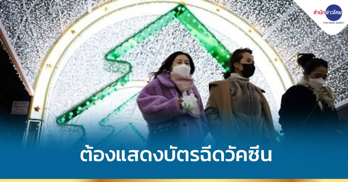 โซล 3 ธ.ค.-เกาหลีใต้ประกาศวันนี้ว่า ผู้ที่จะไปใช้บริการที่ภัตตาคารและโรงภาพยนตร์และสถานที่สาธารณะอื่น ๆ จะต้องแสดงบัตรผ่านว่าได้รับการฉีดวัคซีนป้องกันการติดเชื้อไวรัสโรคโควิด-19 เรียบร้อยแล้ว ท่ามกลางสถานการณ์ที่ยอดผู้ติดเชื้อเพิ่มสูงขึ้นและพบผู้ติดเชื้อไวรัสกลายพันธุ์สายพันธุ์โอไมครอนในประเทศแล้ว 6 ราย