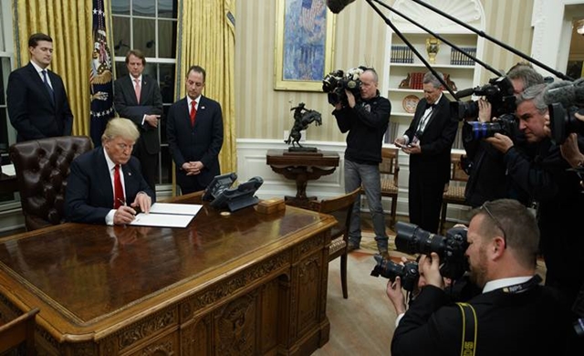 ประธานาธิบดีทรัมป์ วัย 70 ปีตรงไปยังห้องทำงานรูปไข่ในทำเนียบขาวทันทีที่เสร็จสิ้นพิธีสาบานตนที่หน้าอาคารรัฐสภา ลงนามคำสั่งประธานาธิบดีฉบับแรกให้หน่วยงานรัฐบาลทุกแห่งยกเลิก เลื่อนหรือให้การยกเว้นการปฏิบัติตามมาตราต่าง ๆ ที่เพิ่มภาระการคลังให้แก่รัฐ บริษัทหรือบุคคล ขณะเดียวกันขอให้เพิ่มความยืดหยุ่นในการดำเนินโครงการประกันสุขภาพควบคู่ไปกับการทำให้ธุรกิจระหว่างรัฐในการให้บริการสุขภาพและประกันสุขภาพเปิดกว้างและเสรี