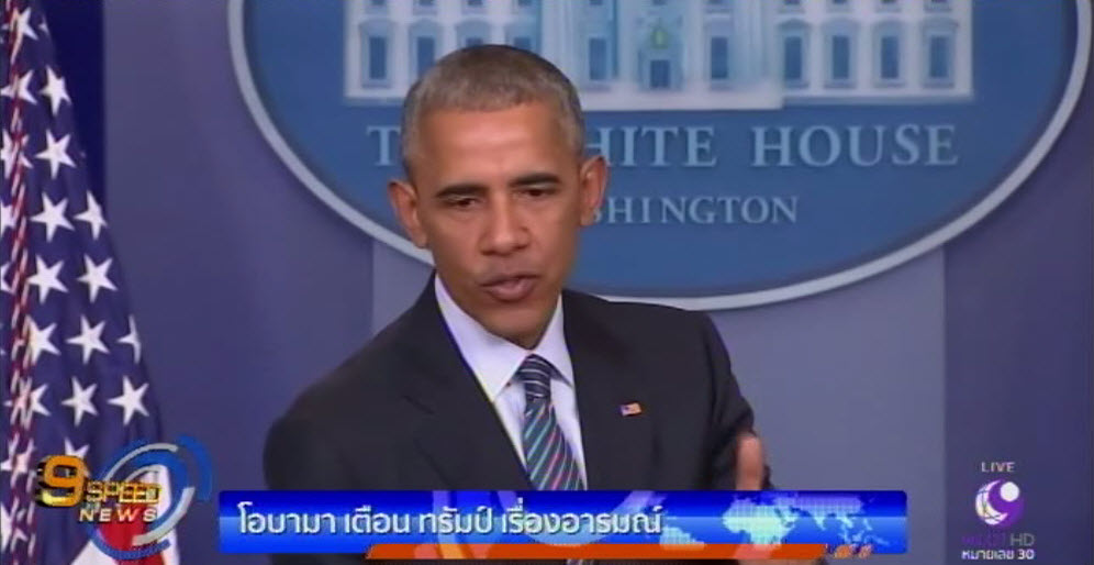 สหรัฐ 15 พ.ย.-ประธานาธิบดีโอบามา เผยรู้สึกกังวลเกี่ยวกับการแสดงออกทางอารมณ์ของ โดนัลด์ ทรัมป์ เตือนไม่เป็นผลดีต่อการดำรงตำแหน่งผู้นำสหรัฐของเขาอย่างแน่นอน