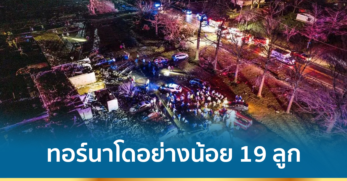 วอชิงตัน 11 ธ.ค.- สหรัฐเกิดพายุกำลังแรงพัดทั่วภาคกลางของประเทศเมื่อวันศุกร์ตามเวลาท้องถิ่น และทำให้เกิดทอร์นาโดอย่างน้อย 19 ลูก ใน 5 รัฐ