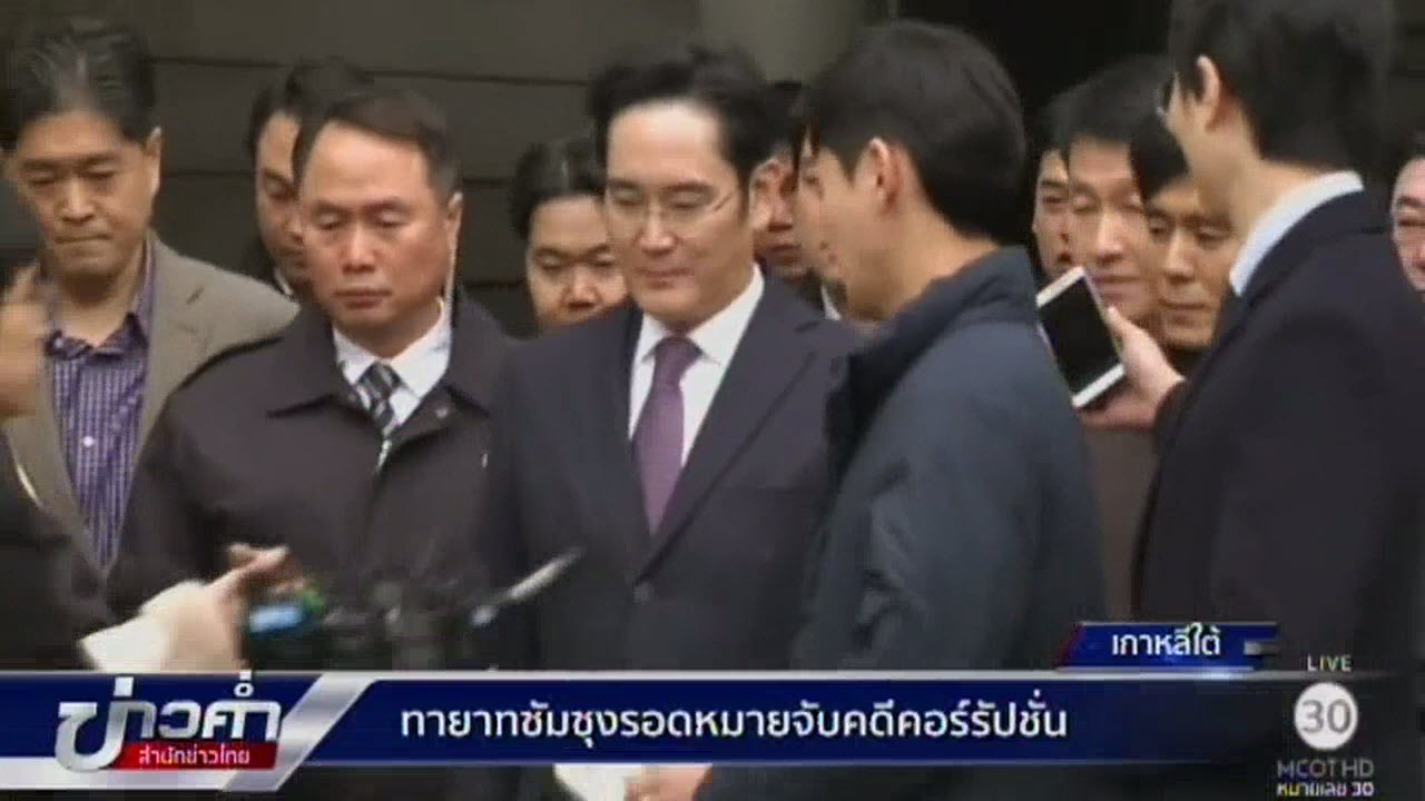เกาหลีใต้ 19 ม.ค.-ศาลเกาหลีใต้ปฏิเสธคำร้องของอัยการ ซึ่งต้องการให้ศาลอนุมัติหมายจับทายาทคนโตของกลุ่มธุรกิจซัมซุง ฐานมีส่วนเกี่ยวข้องกับคดีคอร์รัปชั่น ที่โยงใยถึงประธานาธิบดีปักกึนฮเย ผู้นำหญิงของประเทศ ส่งผลให้ทายาทซัมซุงรอดพ้นการถูกจับกุมตัวในขณะนี้