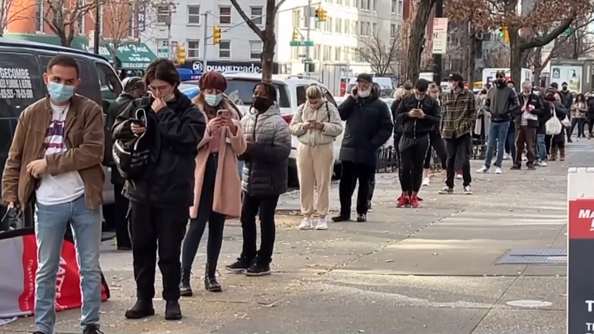 แม้จะมีผู้ติดเชื้อโควิด-19 สายพันธุ์โอไมครอน ในรัฐนิวยอร์ก เพียง 13% ของจำนวนผู้ติดเชื้อโควิดในนิวยอร์กและนิวเจอร์ซีย์ แต่ประชาชนก็พากันไปตรวจหาเชื้อโควิดตามศูนย์ตรวจเชื้อเป็นจำนวนมาก หลายแห่งคิวรอตรวจเป็นแถวยาว ทั้งนี้ รัฐนิวยอร์กรายงานยอดผู้ติดเชื้อโควิด-19 เมื่อวันพุธ 18,300 ราย สูงสุด 3 วันติดต่อกัน