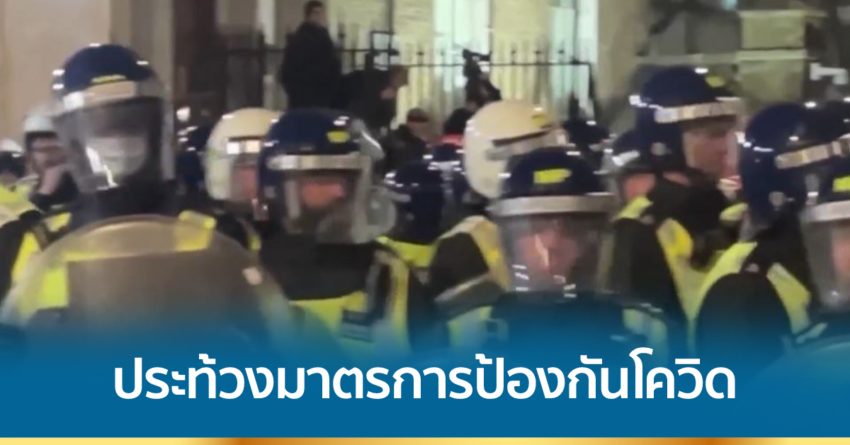 อังกฤษ 19 ธ.ค. – ผู้ประท้วงต่อต้านมาตรการเข้มงวดเพื่อควบคุมการระบาดของโควิด-19 ปะทะตำรวจปราบจลาจล ในกรุงลอนดอน มีตำรวจบาดเจ็บหลายนาย แต่ไม่มีผู้ถูกจับกุม