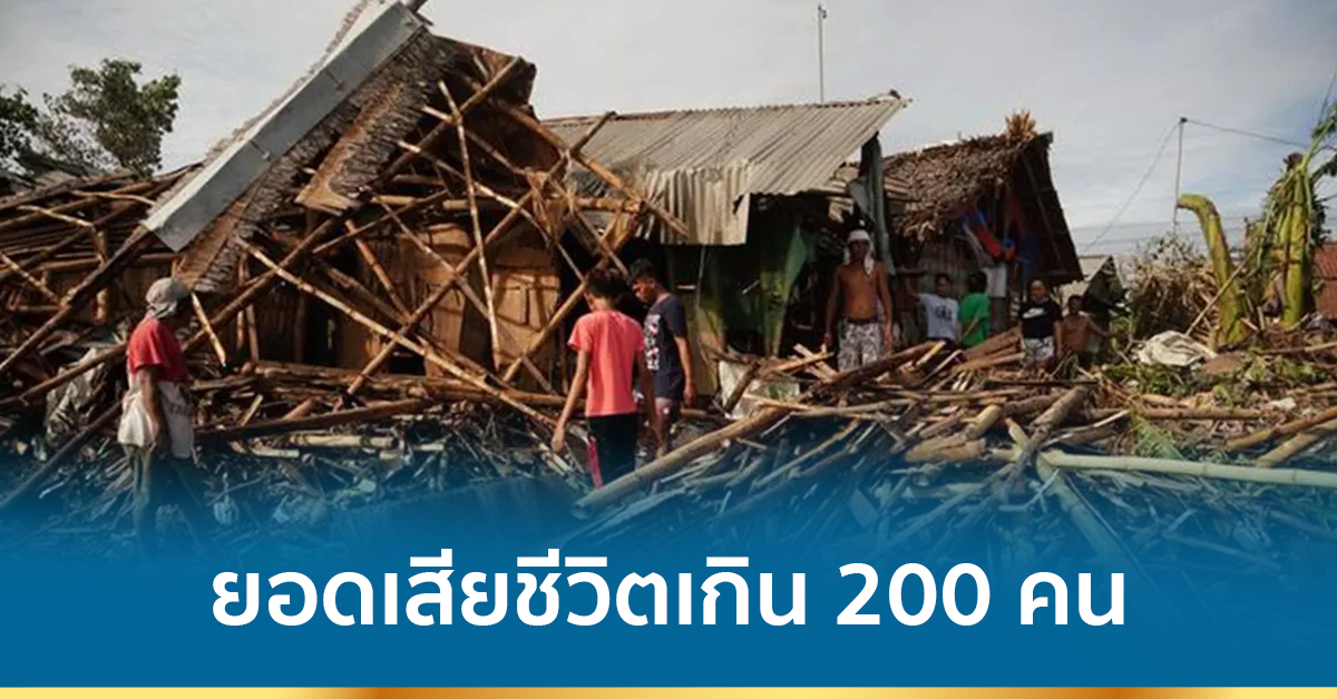 มะนิลา 20 ธ.ค.- สื่อฟิลิปปินส์รายงานอ้างตำรวจว่า ยอดผู้เสียชีวิตจากไต้ฝุ่นราอี (Rai) พัดถล่มเมื่อวันพฤหัสบดีที่ผ่านมา เพิ่มขึ้นเป็นอย่างน้อย 208 คน บาดเจ็บ 239 คน และสูญหายอยู่ 52 คน