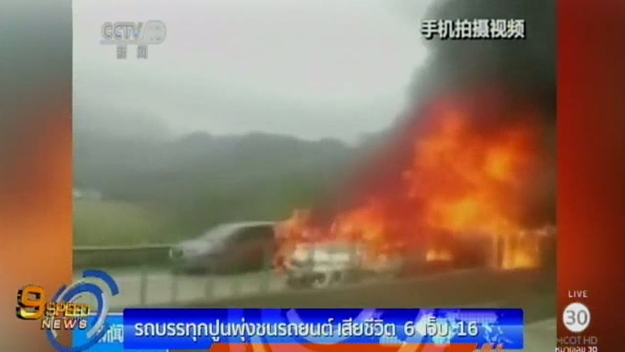 จีน 15 ม.ค.-เกิดเหตุรถบรรทุกปูนซิเมนต์ของจีน พุ่งชนรถยนต์คันอื่นบนทางด่วนเมืองฉิงหยวน มณฑลกวางตุ้ง ทางใต้ของจีน ทำให้เกิดเพลิงลุกไหม้รถยนต์ทั้งหมด และมีผู้เสียชีวิต 6 คน บาดเจ็บ 16 คน ส่วนคนขับรถบรรทุกปูนซิเมนต์ เจ้าหน้าที่สามารถควบคุมตัวไว้ได้ทันท่วงที อย่างไรก็ตามก่อนหน้านี้ รัฐบาลจีนพยายามกวาดล้างรถบรรทุกน้ำหนักเกิน เพื่อทำให้ถนนปลอดภัยขึ้น ส่วนองค์การอนามัยโลก เผยมีผู้เสียชีวิตจากอุบัติเหตุบนท้องถนนในจีนปีละกว่า 200,000 คน ทุกปี .-สำนักข่าวไทย