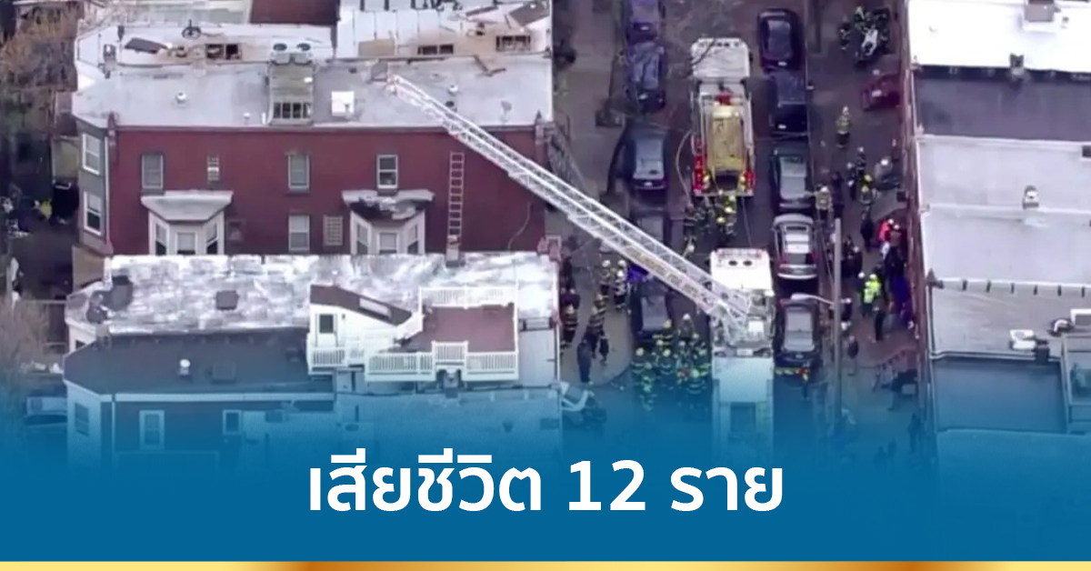 ฟิลาเดลเฟีย 6 ม.ค. – เหตุเพลิงไหม้อาคารที่พักอาศัยที่เมืองฟิลาเดลเฟียในรัฐเพนซิลเวเนียของสหรัฐเมื่อช่วงเช้าวันพุธตามเวลาท้องถิ่น ทำให้มีผู้เสียชีวิต 12 ราย ซึ่งรวมถึงผู้เสียชีวิตเป็นเด็กมากถึง 8 ราย