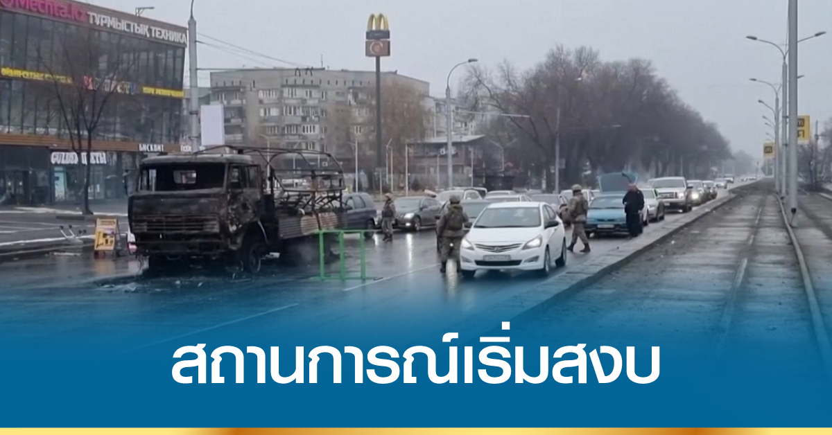 สถานการณ์ในกรุงอัลมาตีของคาซัคสถาน เริ่มเข้าสู่ภาวะสงบแล้ว เมื่อวานนี้ หลังทหารเข้าควบคุมสถานการณ์ไว้ได้ ภายหลังเกิดการประท้วงครั้งใหญ่ที่สุดในรอบ 30 ปี โดยกลุ่มผู้ประท้วงบุกเข้าไปเผาอาคารทำการของรัฐบาล ทั้งในเมืองหลวงและหลายเมืองรอบนอก จากความไม่พอใจภาวะน้ำมันแพง ก่อนบานปลายสู่การต่อต้านรัฐบาลที่รัสเซียสนับสนุน