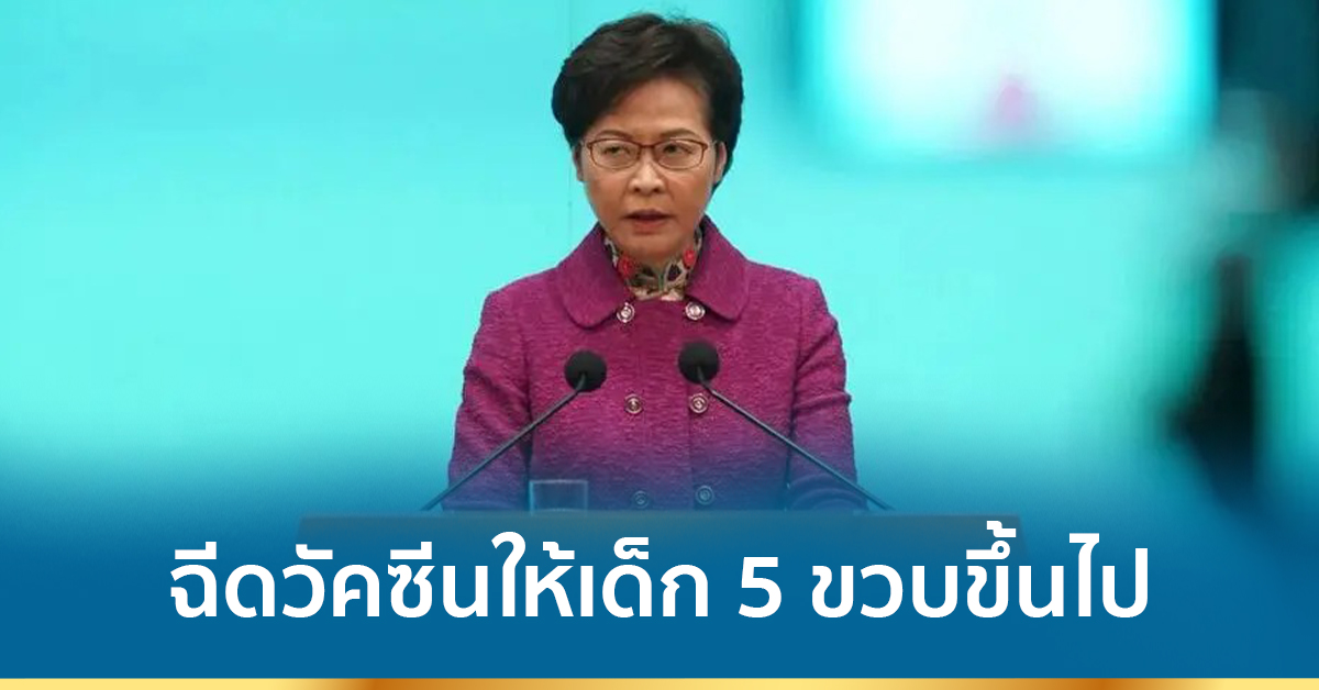 ฮ่องกง 11 ม.ค. – นางแครี่ หล่ำ หัวหน้าคณะผู้บริหารสูงสุดของฮ่องกงกล่าววันนี้ว่า ฮ่องกงจะเริ่มการฉีดวัคซีนป้องกันการติดเชื้อไวรัสโรคโควิด-19 ให้แก่เด็กอายุตั้งแต่ 5 ปีขึ้นไป ในขณะที่ฮ่องกงกำลังพยายามเพิ่มอัตราการฉีดวัคซีนที่ค่อนข้างต่ำในขณะนี้ท่ามกลางการระบาดของโควิด-19 ที่เพิ่มขึ้นในขณะนี้