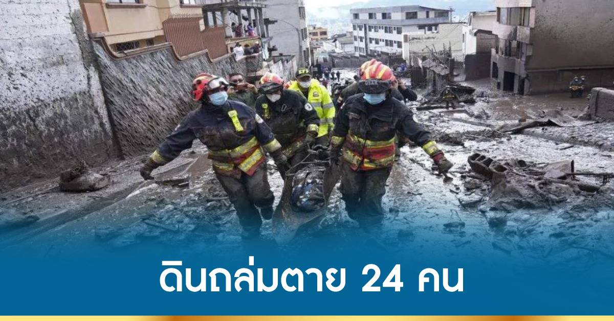 กีโต 2 ก.พ.- ทางการกรุงกีโตของเอกวาดอร์ในทวีปอเมริกาใต้แจ้งว่า มีผู้เสียชีวิตแล้ว 24 คน และสูญหายอีก 12 คน จากเหตุดินถล่ม หลังจากฝนตกหนักที่สุดในรอบเกือบ 20 ปี