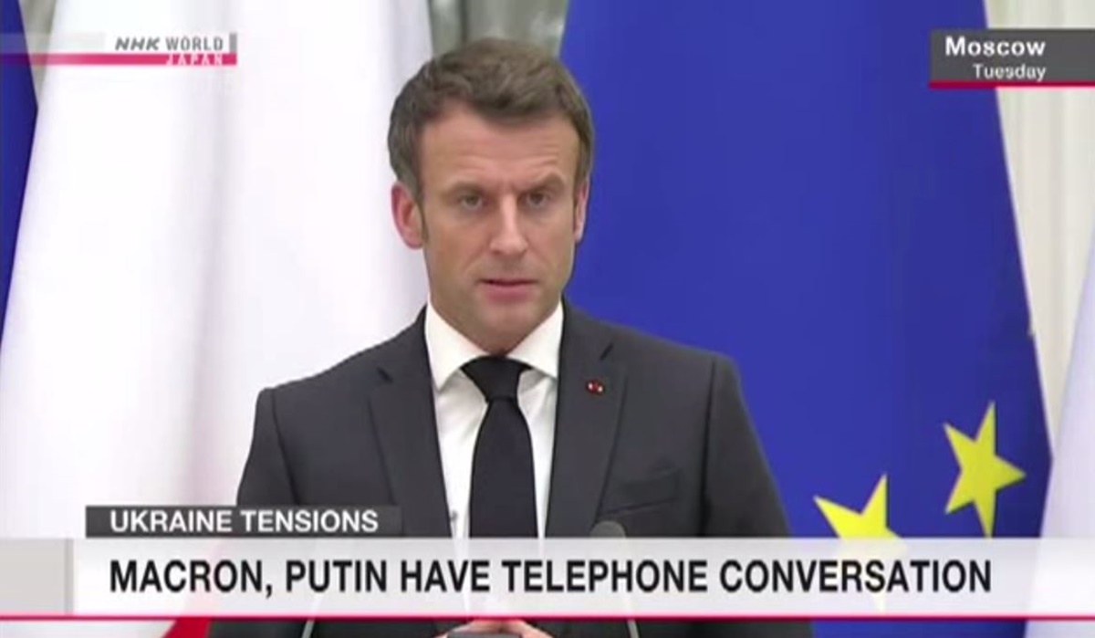 วันเดียวกันนี้ ประธานาธิบดีเอมานูว์แอล มาครง ของฝรั่งเศส ได้หารือทางโทรศัพท์กับผู้นำรัสเซียด้วย นายมาครง ระบุว่า กลุ่มชาติตะวันตกรู้สึกเป็นห่วงอย่างมาก กรณีรัสเซียอาจบุกโจมตียูเครน ส่วนประธานาธิบดีปูติน ระบุเป็นการคาดเดาเชิงยั่วยุของโลกตะวันตก แต่ผู้นำทั้ง 2 ประเทศ เน้นย้ำสนับสนุนแนวทางเจรจาที่ฝรั่งเศสและเยอรมนีเสนอเป็นคนกลาง