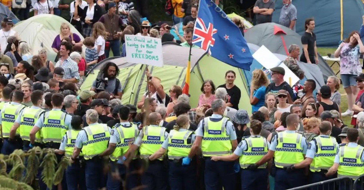 นายตำรวจกรุงเวลลิงตันเผยกับสถานีวิทยุในประเทศว่า การที่เจ้าหน้าที่รัฐสภาระดมเปิดเพลงติดหูอย่าง เบบี้ชาร์ก มากาเรนา และแมนดีของแบร์รี แมนิโลว์ทำให้ผู้ประท้วงอยากปักหลักอยู่ต่อไปมากกว่าคิดจะแยกย้าย เป็นวิธีที่ตำรวจไม่เห็นด้วยและไม่คิดว่าจะเกิดขึ้น พร้อมกับถือโอกาสนี้ชี้แจงเรื่องที่ตำรวจพยายามผลักดันผู้ประท้วงตั้งแต่วันพฤหัสบดีจนเกิดการปะทะกันและมีผู้ถูกจับกุมมากกว่า 120 คน ตำรวจขอให้ผู้ขับยวดยานมาปิดกั้นถนนหน้ารัฐสภาตั้งแต่สัปดาห์ก่อนเคลื่อนย้ายรถออกไปและขอให้ผู้จัดการประท้วงหันมาเจรจา