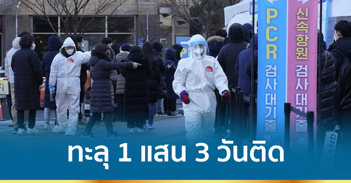 โซล 20 ก.พ.- เกาหลีใต้พบผู้ติดโรคติดเชื้อไวรัสโคโรนา 2019 หรือโควิด-19 รายใหม่เกิน 100,000 คน เป็นวันที่ 3 ติดต่อกันในวันนี้ เพราะเชื้อไวรัสสายพันธุ์โอไมครอนที่แพร่ง่าย