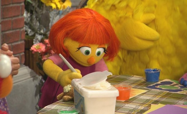 รายการเซซามีสตรีทได้สร้างหุ่นมือใหม่ชื่อจูเลียและนำเธอมาร่วมแสดงในบางฉาก เมื่อมีคนแนะนำให้รู้จักกับบิ๊กเบิร์ด หุ่นนกสีเหลืองที่เป็นคนอยู่ข้างใน จูเลียเมินเฉย แต่เมื่อเห็นเด็ก ๆ กลุ่มหนึ่งเล่นวิ่งไล่จับกัน จูเลียก็กระโดดขึ้น ๆ ลง ๆ อย่างตื่นเต้น จากนั้นเด็ก ๆ กลุ่มนั้นก็เปลี่ยนมาเล่นกระโดดขึ้น ๆ ลง ๆ ไปกับจูเลียแทน เฟอร์ราโรอธิบายว่า สาเหตุที่เขียนบทเช่นนี้เพราะต้องการแสดงให้เห็นว่า เด็กออทิสติกบางคนจะแสดงอาการแบบนี้ คนในสังคมเพียงแค่สื่อสารกับเด็กออทิสติกอย่างง่าย ๆ ก็จะเข้าใจในสิ่งที่พวกเขาเป็น
