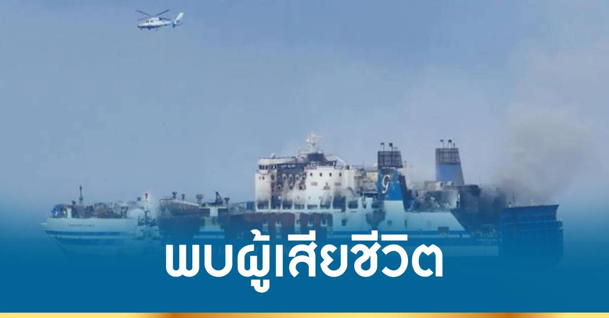 คอร์ฟู 21 ก.พ. – เจ้าหน้าที่ของกรีซรายงานว่า พบผู้เสียชีวิตรายแรกจากเหตุเพลิงไหม้เรือเฟอร์รี่ที่บรรทุกรถยนต์และผู้โดยสาร 292 คนเมื่อช่วงเช้ามืดวันศุกร์ที่ผ่านมา และพบผู้รอดชีวิตเพิ่มอีก 1 คน โดยที่ในขณะนี้ยังคงมีผู้สูญหายอีก 10 คน