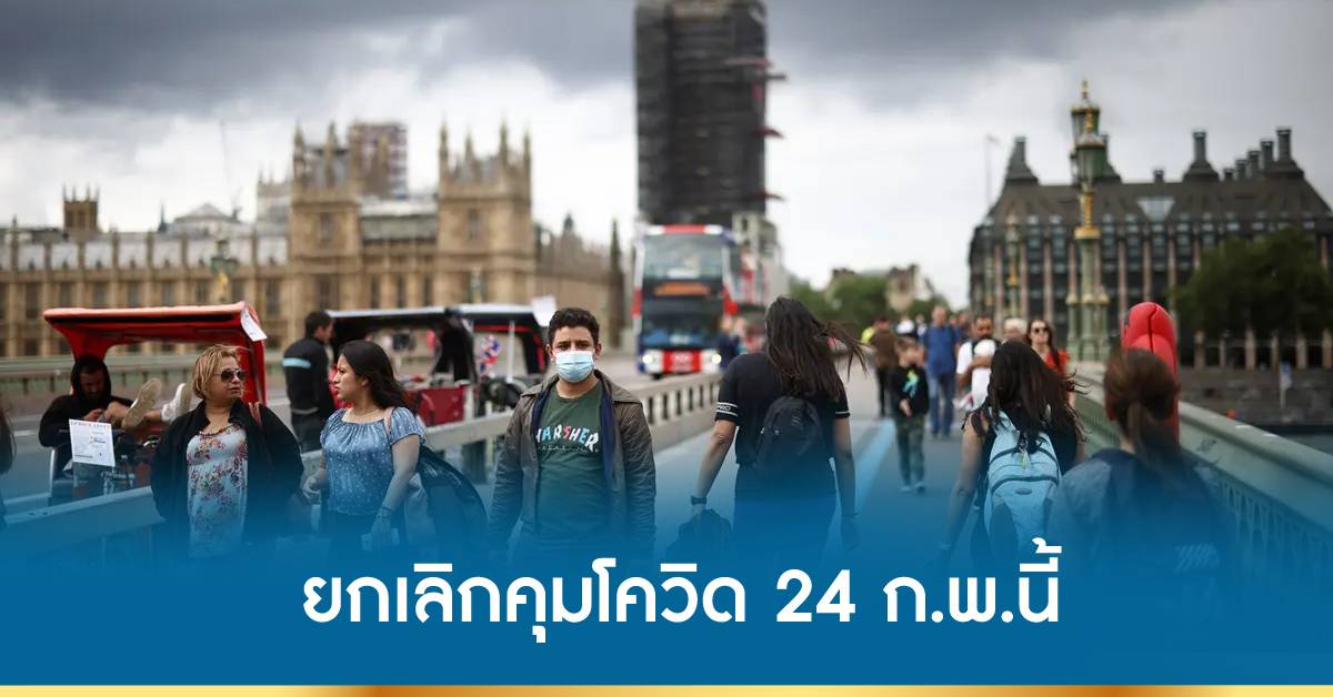 ลอนดอน 22 ก.พ. – อังกฤษจะยกเลิกการใช้มาตรการควบคุมโรคโควิด-19 ทั้งหมดในวันที่ 24 กุมภาพันธ์ และจะหยุดให้บริการตรวจหาเชื้อโควิดฟรีตั้งแต่วันที่ 1 เมษายนเป็นต้นไป