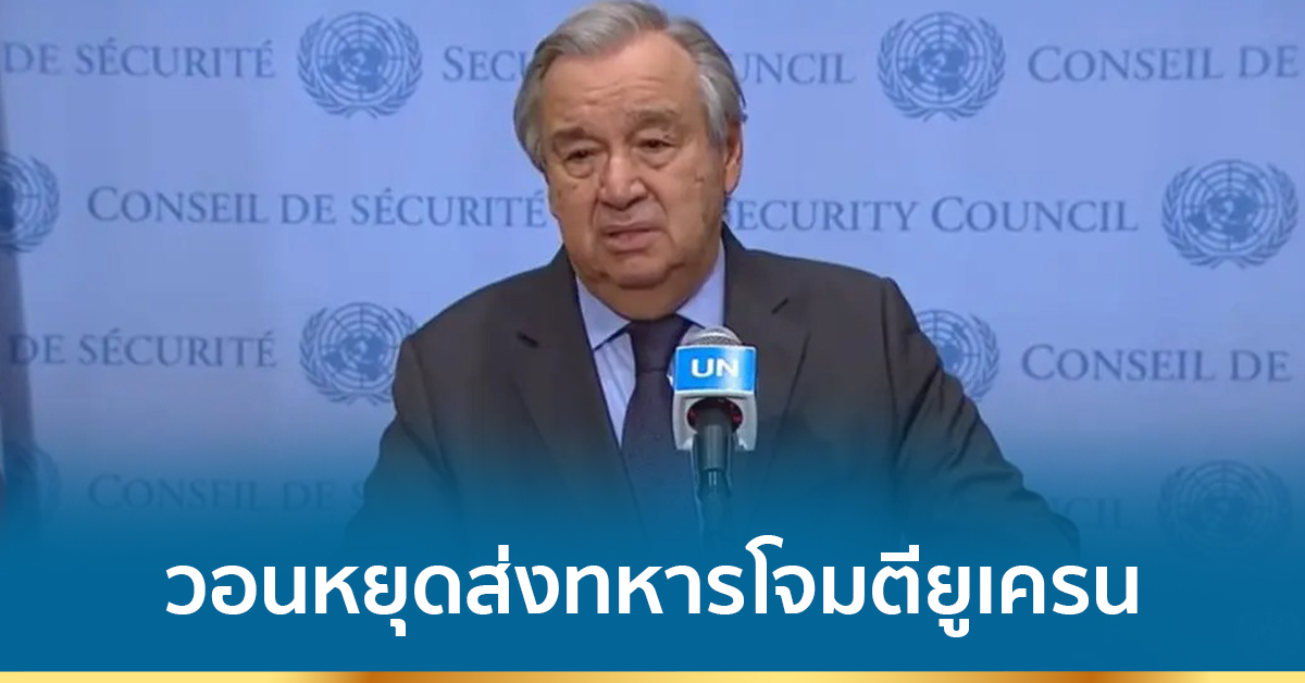 สหประชาชาติ 24 ก.พ.- นายอันโตนีโอ กูเตอร์เรส เลขาธิการสหประชาชาติหรือยูเอ็น (UN) ขอให้ประธานาธิบดีวลาดิเมียร์ ปูติน ของรัสเซียหยุดการส่งทหารเข้าไปโจมตียูเครน และให้โอกาสแก่สันติภาพ