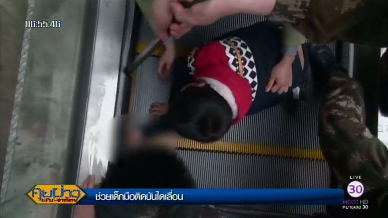 จีน 18 มี.ค.-เจ้าหน้าที่ดับเพลิงของจีนใช้เวลานานเกือบ 1 ชั่วโมง ช่วยเหลือเด็กชายวัย 6 ขวบ เล่นซุกซนมือติดค้างอยู่กับบันไดเลื่อนที่อาคารพักอาศัยแห่งหนึ่งในเมืองฉงชิ่ง