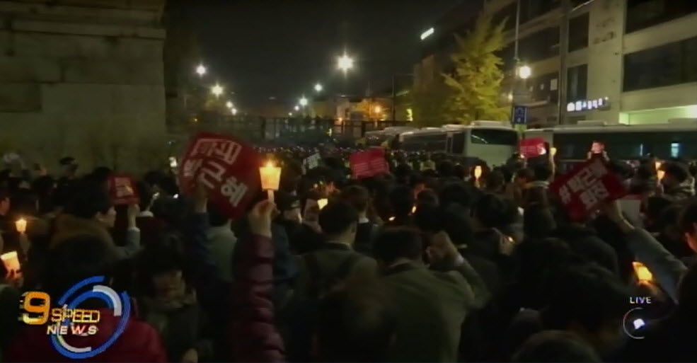ชาวเกาหลีใต้ รวมตัวประท้วงในกรุงโซลเพื่อเรียกร้องให้ประธานาธิบดีปัก กึน ฮเย ลาออกจากตำแหน่ง โดยตำรวจเผยว่า จำนวนผู้ประท้วงอยู่ที่ราว 260,000 คน แต่ผู้จัดการประท้วงบอกว่า มีผู้เข้าร่วมชุมนุมมากถึงเกือบ 1 ล้านคน ซึ่งนับเป็นการชุมนุมครั้งใหญ่ที่สุดครั้งหนึ่งในรอบ 30 ปี ประธานาธิบดีปัก กำลังถูกสั่นคลอนอย่างหนัก จากกรณีอื้อฉาวที่ปล่อยให้คนใกล้ชิด เข้ามาแทรกแซงกิจการของรัฐ แม้ผู้นำเกาหลีใต้พยายามลดกระแสไม่พอใจด้วยการแถลงขอโทษครั้งแล้วครั้งเล่า ปรับคณะรัฐมนตรี และยอมลดอำนาจบริหารของตนเอง แต่ก็ไม่สามารถลดกระแสความไม่พอใจของชาวเกาหลีใต้ได้.-สำนักข่าวไทย