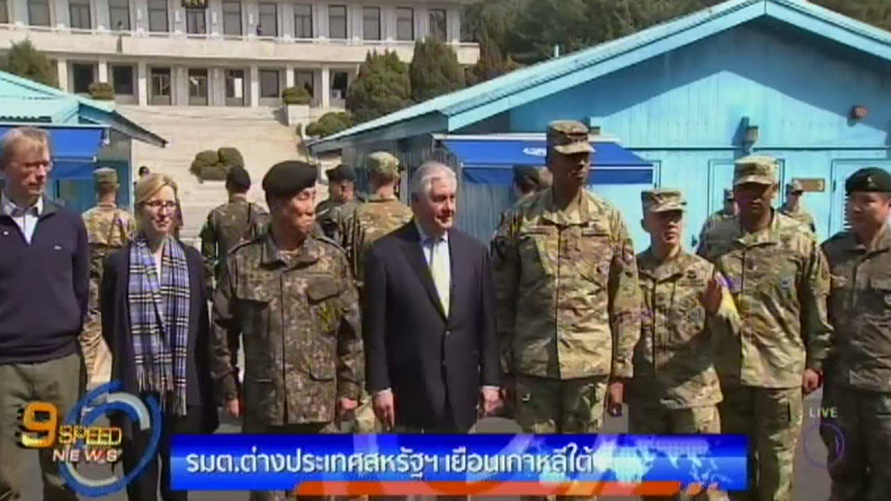 เกาหลีใต้ 17 มี.ค.-นายเร็กซ์ ทิลเลอร์สัน รัฐมนตรีต่างประเทศสหรัฐเดินทางไปยังเขตปลอดทหารหมู่บ้านปันมุนจอม พรมแดนแบ่งแยกเกาหลีเหนือและเกาหลีใต้ โดยได้พูดคุยกับผู้บัญชาการกองกำลังสหรัฐในเกาหลีใต้ จากนั้นจะพบหารือกับนายฮวาง เคียว อัน รักษาการณ์ประธานาธิบดีเกาหลีใต้ และในวันพรุ่งนี้จะเดินทางต่อไปยังจีน หวังให้จีนร่วมกดดันเกาหลีเหนือให้ยุติการทดลองขีปนาวุธและอาวุธนิวเคลียร์.-สำนักข่าวไทย