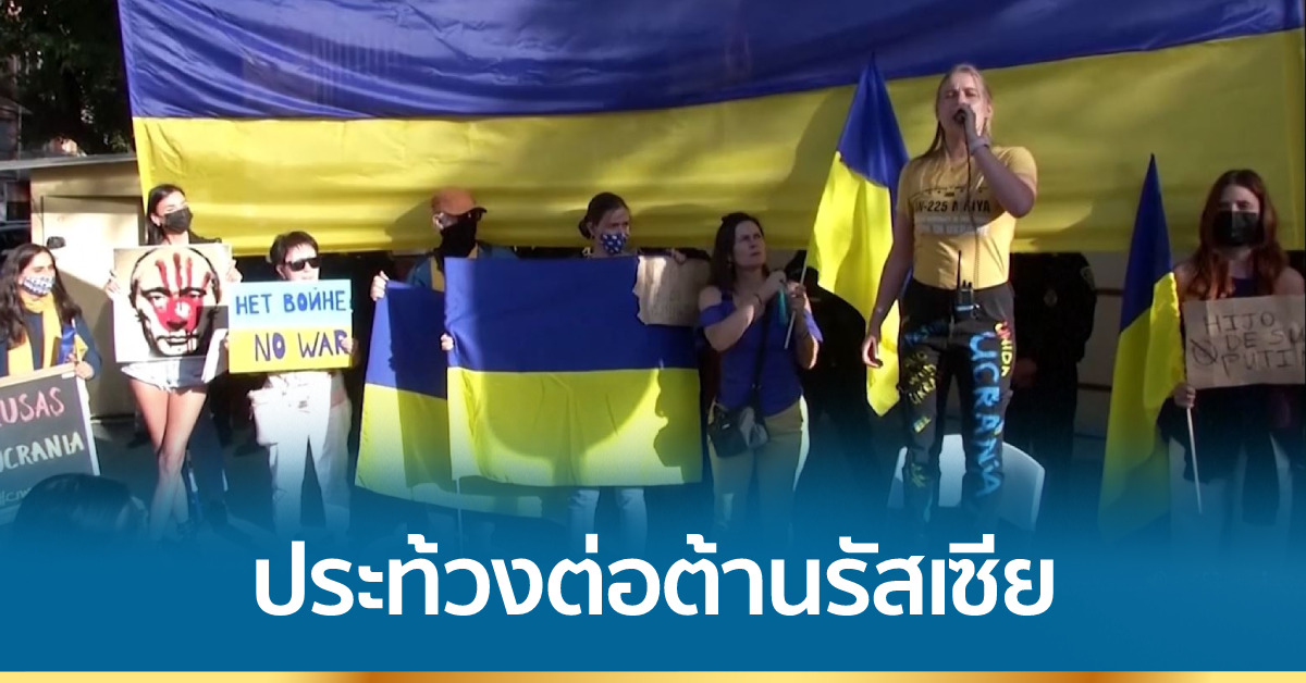 หลายเมืองในทวีปอเมริกาใต้ ชุมนุมประท้วงต่อต้านรัสเซียที่ได้ทำสงครามรุกรานยูเครน ผู้ประท้วงรวมตัวด้านหน้าสถานทูตรัสเซีย ที่กรุงเม็กซิโกซิตี้ นำธงชาติยูเครนไปประดับและป้ายข้อความต่อต้านสงคราม ชาวยูเครนที่อาศัยในเม็กซิโก กล่าวว่า จำเป็นต้องให้ชาวรัสเซียได้รู้ความจริง เพราะรัฐบาลของนายวลาดิเมียร์ ปูติน ปกปิดความจริงจากประชาชนแล้วให้ข้อมูลที่ผิดๆ