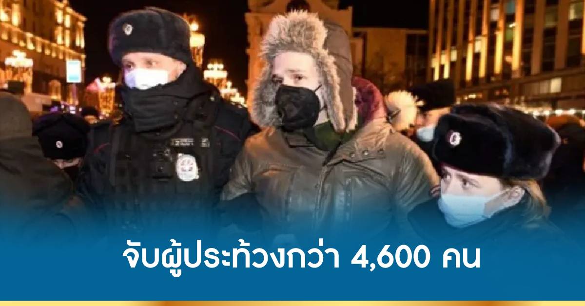 มอสโก 7 มี.ค.- กลุ่มสังเกตการณ์การประท้วงในรัสเซียอ้างว่า ตำรวจรัสเซียควบคุมตัวผู้ประท้วงมากกว่า 4,600 คนที่ออกมาเคลื่อนไหวตามเมืองต่าง ๆ เมื่อวันอาทิตย์ ประท้วงรัสเซียที่ใช้ปฏิบัติการทางทหารต่อยูเครนเป็นวันที่ 11