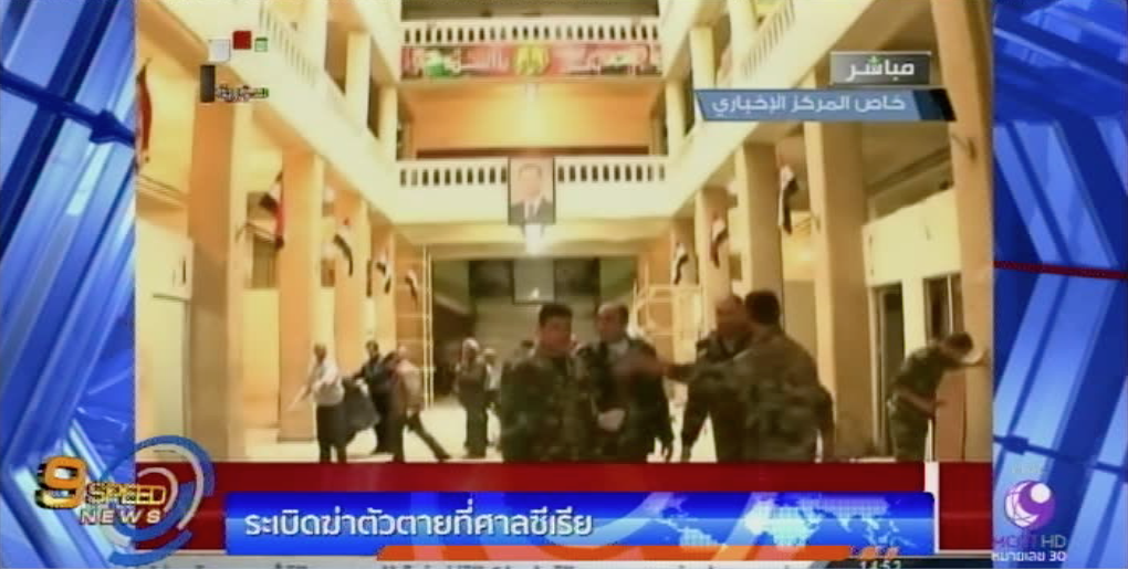 ซีเรีย 15 มี.ค.-คนร้ายจุดชนวนระเบิดฆ่าตัวตายบริเวณที่ตั้งอาคารศาลฎีกากลางกรุงดามัสกัส ซีเรีย มีผู้เสียชีวิตอย่างน้อย 25 คน บาดเจ็บอีกหลายสิบคน