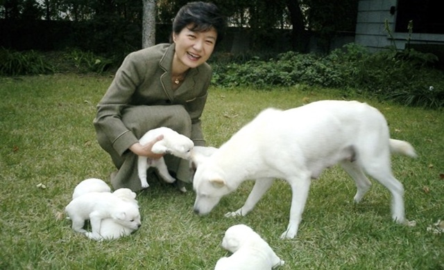 สุนัขทั้งหมดเป็นพันธุ์จินโด ซึ่งเป็นสายพันธุ์พื้นเมืองของเกาหลี มีถิ่นกำเนิดบนเกาะจินโด ทางตะวันตกเฉียงใต้ของคาบสมุทรเกาหลี และขึ้นชื่อเรื่องความจงรักภักดีต่อเจ้าของ เพื่อนบ้านได้มอบสุนัขพันธุ์จินโดคู่หนึ่งให้เธอเมื่อครั้งย้ายไปอยู่ในทำเนียบเมื่อต้นปี 2556 และเพิ่งตกลูก 7 ตัวเมื่อเดือนมกราคมปีนี้.-สำนักข่าวไทย