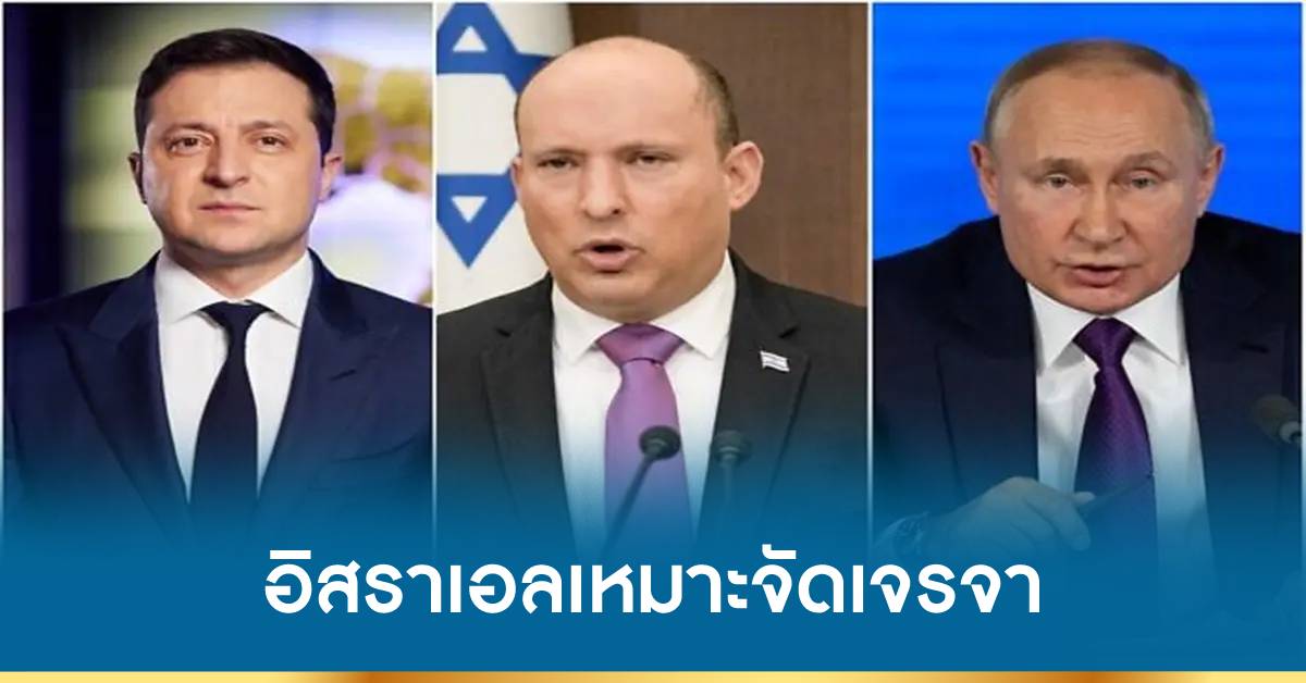 ประธานาธิบดีเซเลนสกีเผยภายหลังเสร็จสิ้นการกล่าวคำปราศรัยต่อรัฐสภาของอิสราเอลผ่านคลิปวิดีโอเมื่อวันอาทิตย์ตามเวลาในยูเครนว่า นายกรัฐมนตรีนาฟตาลี เบนเน็ตต์ ของอิสราเอล ได้ใช้ความพยายามอย่างมากเพื่อที่จะเข้ามาเป็นตัวกลางในการจัดการเจรจาสันติภาพระหว่างรัฐบาลยูเครนกับรัสเซีย ยูเครนรู้สึกขอบคุณผู้นำอิสราเอลอย่างยิ่ง เขาเชื่อว่าจะมีการนัดเจรจากับรัสเซียเกิดขึ้นในเร็ว ๆ นี้ ซึ่งอาจจะจัดขึ้นที่นครเยรูซาเล็มของอิสราเอลก็เป็นได้ เนื่องจากที่แห่งนี้สะท้อนถึงความสำคัญและความหมายของสันติภาพ นอกจากนี้ ประธานาธิบดีเซเลนสกี ซึ่งเป็นคนเชื้อสายยิว ยังได้กล่าวต่อรัฐสภาและประชาชนอิสราเอลเป็นครั้งแรกว่า รัฐบาลยูเครนถูกรัฐบาลรัสเซียใส่ร้ายว่าเป็นนาซี และข้อเท็จจริงในตอนนี้ก็พิสูจน์แล้วว่าข้อกล่าวหาของรัสเซียนั้นไม่เป็นความจริง