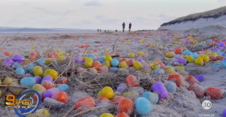 เยอรมนี 6 ม.ค.-ที่เห็นอยู่นี้คือไข่พลาสติกหลากสีสันจำนวนมหาศาลที่ถูกคลื่นซัดเข้ามาติดอยู่บนชายหาดเกาะลังอุ๊กของเยอรมนี ภายในไข่มีของเล่นชิ้นเล็กๆ บรรจุเอาไว้ สร้างความตื่นเต้นให้แก่ผู้ที่พบเห็น โดยเฉพาะเด็กๆ คาดว่าไข่พลาสติกทั้งหมดมาจากตู้คอนเทนเนอร์ที่หล่นลงมาจากเรือสินค้า ซึ่งกำลังมุ่งหน้าไปท่าเรือเบรมาฮาเฟ่นของเยอรมนี ทางการต้องขอความช่วยเหลือไปยังโรงเรียนอนุบาลในพื้นที่ให้ระดมกำลังเก็บไข่ออกจากชายหาด ก่อนที่จะเป็นอันตรายต่อชีวิตของสัตว์ป่าในบริเวณดังกล่าว.-สำนักข่าวไทย