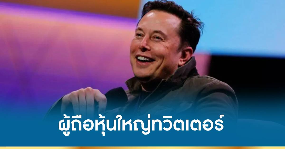 เอกสารของสำนักงานคณะกรรมการกำกับหลักทรัพย์และตลาดหลักทรัพย์ของสหรัฐระบุว่า มัสก์ถือหุ้นของทวิตเตอร์จำนวน 73,486,938 หุ้น หรือคิดเป็นร้อยละ 9.2 นับถึงวันที่ 14 มีนาคม ทำให้มัสก์กลายเป็นผู้ถือหุ้นรายใหญ่ที่สุดของทวิตเตอร์ ซึ่งมีสัดส่วนมากกว่าแจ็ค ดอร์ซีย์ ผู้ก่อตั้งทวิตเตอร์ ที่ถือหุ้นร้อยละ 2.25 ประกาศดังกล่าวทำให้หุ้นของทวิตเตอร์พุ่งขึ้นกว่าร้อยละ 27 ในตลาดหุ้นนิวยอร์กเมื่อวันจันทร์ตามเวลาท้องถิ่น ทั้งนี้ หุ้นของทวิตเตอร์ที่มัสก์ถืออยู่มีมูลค่าสูงถึง 2,890 ล้านดอลลาร์สหรัฐ (ราว 97,000 ล้านบาท)