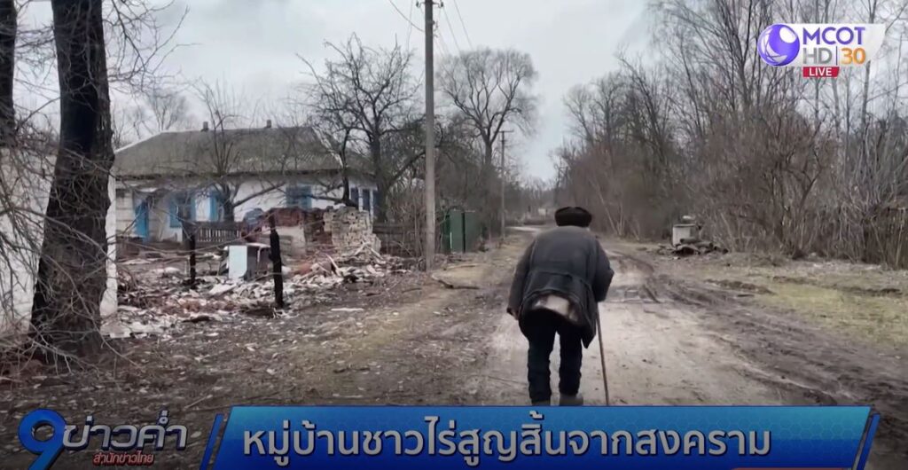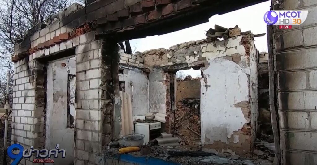 บ้านไร่ตอนเหนือของกรุงเคียฟ ไม่เหลือสภาพให้พักอาศัยอีกแล้ว เจ้าของบ้านในวัย 98 ปี เล่าว่าในวันที่รัสเซียบุก จำต้องหลบหนีไปได้อย่างหวุดหวิด เพื่อรักษาชีวิต กลับมาเห็นสภาพบ้านเช่นนี้เขายังไม่รู้ว่าจะเริ่มชีวิตใหม่อย่างไร