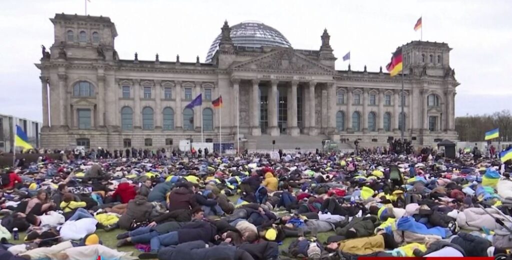 เช่นเดียวกับที่กรุงทลิบิซี เมืองหลวงของจอร์เจีย ประเทศที่เป็นส่วนหนึ่งของสหภาพโซเวียต ผู้คนได้จัดการประท้วงแบบนอนตาย ที่อาคารรัฐสภา บางคนมัดมือตัวเองไว้ด้านหลัง บางคนจำลองสภาพเหมือนกับศพผู้คนในเมืองบูจา หลายคนเป็นชาวรัสเซียที่มาร่วมประท้วง บอกว่าอันตรายมากที่จะต่อต้านสงครามในรัสเซีย