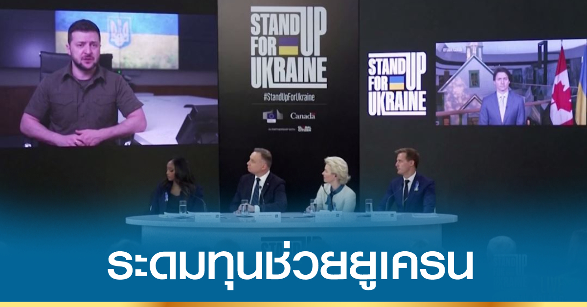 กรรมาธิการยุโรป แคนาดา และองค์กรช่วยเหลือนานาชาติ Global Citizen ร่วมจัดงานระดมทุนส่งความช่วยเหลือด้านมนุษยธรรมให้ยูเครน “Stand Up for Ukraine” ที่กรุงวอร์ซอของโปแลนด์ มีรัฐบาล ผู้นำธุรกิจ และภาคการธนาคาร ประกาศสนับสนุนเงินช่วยเหลือยูเครน รวมกันสูงถึง 9,100 ล้านยูโร หรือราว 331,000 ล้านบาท โดยในจำนวนนี้ เฉพาะกรรมาธิการยุโรป ประกาศให้เงินช่วยเหลือยูเครน 1,000 ล้านยูโร หรือราว 36,000 ล้านบาท. – สำนักข่าวไทย