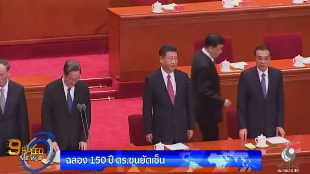 จีน 11 พ.ย.-ประธานาธิบดีสี จิ้นผิง ของจีน กล่าวสุนทรพจน์ ที่มหาศาลาประชาชนในกรุงปักกิ่ง เนื่องในโอกาสฉลองครบรอบ 150 ปีวันคล้ายวันเกิดของ ดร.ซุน ยัตเซ็น ประธานาธิบดีคนแรกของจีน ซึ่งตรงกับวันที่ 12 เดือนนี้ เรียกร้องให้ชาวจีนร่วมกันสร้างความเป็นเอกภาพท่ามกลางปัญหาวุ่นวายทางการเมืองในฮ่องกง และกระแสเรียกร้องอำนาจปกครองตนเองของไต้หวัน ดร.ซุน ยัตเซ็น ได้ชื่อว่าเป็นนักปฏิวัติผู้บุกเบิกแนวคิดชาตินิยมและวางรากฐานการเมืองการปกครองของจีน ปัจจุบันยังคงเป็นที่เคารพรักของชาวจีนในแผ่นดินใหญ่ และชาวจีนพลัดถิ่น.-สำนักข่าวไทย