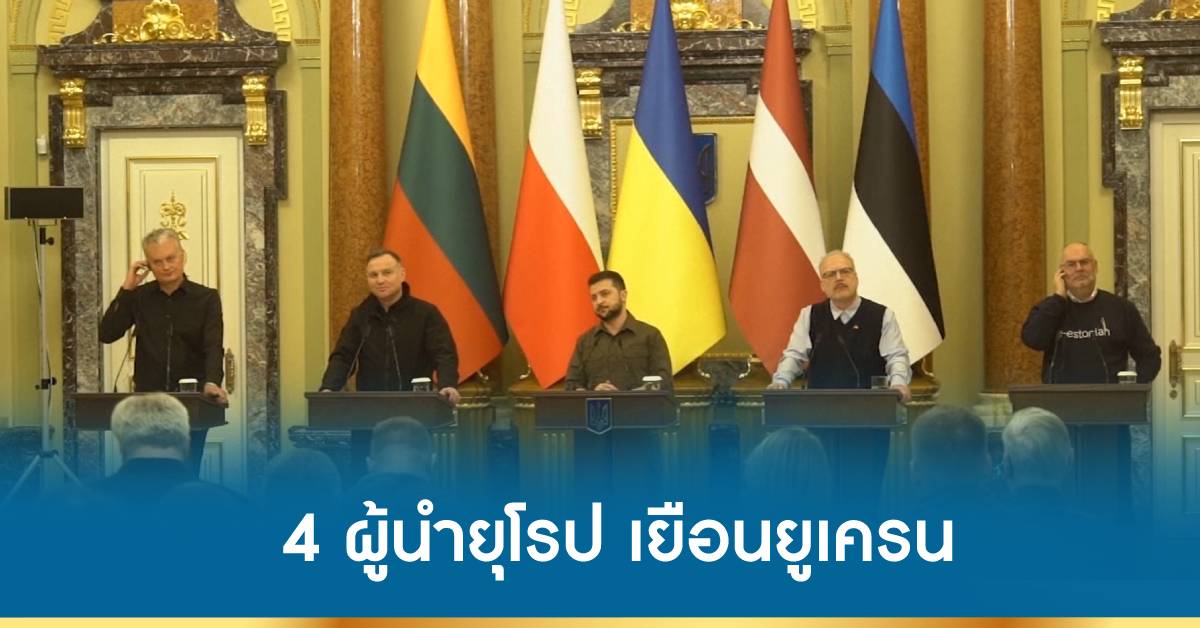 ประธานาธิบดีโวโลดิเมียร์ เซเลนสกี ของยูเครน ให้การต้อนรับและแถลงข่าวร่วมกับประธานาธิบดีของโปแลนด์, ลิธัวเนีย, ลัตเวีย และเอสโตเนีย ที่เดินทางมาเยือนยูเครนโดยรถไฟมาจากโปแลนด์ เพื่อแสดงการสนับสนุนยูเครน และลงพื้นที่ตรวจสอบความเสียหายในเมืองทางเหนือ ใกล้กรุงเคียฟ โดยผู้นำของเอสโตเนีย กล่าวว่า การมาเยือนของผู้นำยุโรป 4 ประเทศ แสดงให้เห็นถึงความสัมพันธ์ที่ใกล้ชิด และความเป็นหนึ่งเดียวกับยูเครนที่เผชิญสถานการณ์ลำบาก ยูเครนต่อสู้เพื่อยุโรปและประชาธิปไตย.-สำนักข่าวไทย