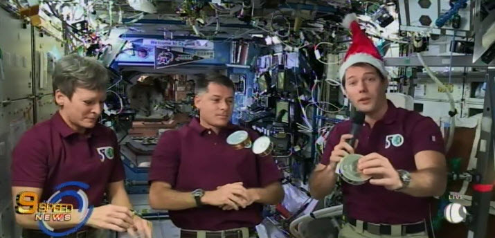 นักบินอวกาศร่วมอวยพรฉลองเทศกาลคริสต์มาส จากสถานีอวกาศนานาชาติ บรรยากาศเป็นไปอย่างสนุกสนาน อาหารและเครื่องดื่มที่ถูกส่งขึ้นมาให้กับนักบินอวกาศบนสถานีอวกาศนานาชาติ สมบูรณ์แบบเหมือนกับงานฉลองเทศกาลคริสต์มาสบนพื้นโลก อาทิ ไก่งวง และขนมปังขิง นักบินอวกาศชุดนี้ยังได้ส่งความคิดถึงมายังครอบครัวด้วย.-สำนักข่าวไทย