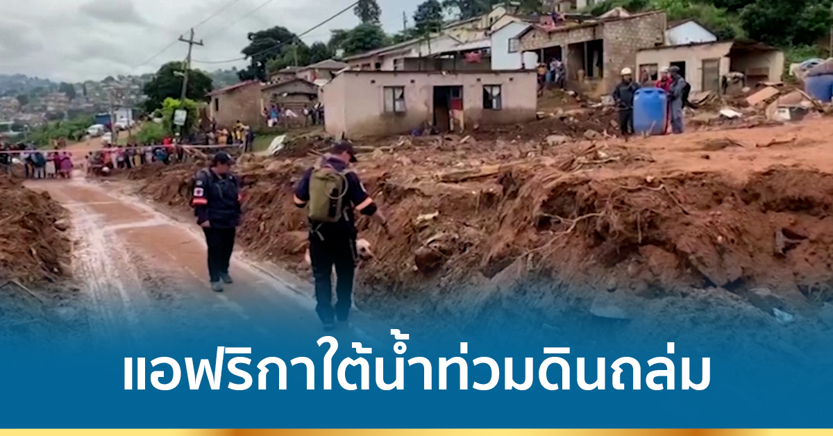 แอฟริกาใต้ 18 เม.ย.- วานนี้ ทีมกู้ภัยช่วยกันค้นหาผู้สูญหายในจังหวัดกวาซูลู-นาทัล ของแอฟริกาใต้ หลังเกิดน้ำท่วมและดินถล่ม เป็นเหตุให้มีผู้เสียชีวิต 443 คน