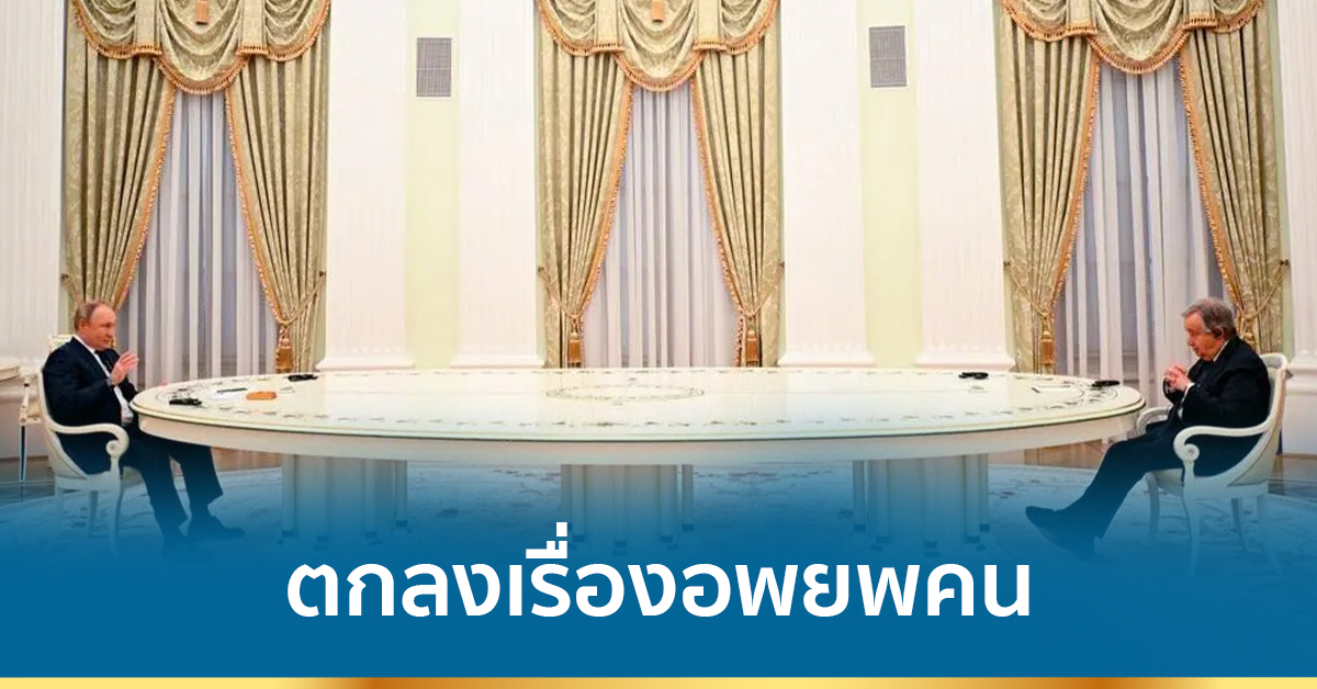 เลขาธิการยูเอ็นและผู้นำรัสเซียหารือกันเกือบ 2 ชั่วโมง โดยนั่งอยู่เพียง 2 คน ตรงข้ามกันด้านหัวโต๊ะยาว เลขาธิการยูเอ็นวิจารณ์ปฏิบัติการทางทหารของรัสเซียในยูเครนว่า ละเมิดบูรณภาพทางดินแดนของประเทศเพื่อนบ้านอย่างชัดเจน และขอให้รัสเซียเปิดทางให้มีการอพยพพลเรือนที่ติดค้างอยู่ในโรงงานเหล็กดังกล่าว ขณะที่ผู้นำรัสเซียอ้างว่า กองกำลังรัสเซียได้เสนอเปิดเส้นทางด้านมนุษยธรรมให้แก่พลเรือนแล้ว แต่กองกำลังยูเครนที่ปักหลักอยู่ในโรงงานใช้พลเรือนเป็นโล่มนุษย์และไม่ยอมปล่อยให้ออกมา เอพีรายงานว่า โรงงานแห่งนี้ถูกรัสเซียโจมตีจนเหลือแต่ซาก และเป็นที่มั่นสุดท้ายของกลุ่มต่อต้านในเมืองมารีอูปอล ว่ากันว่ามีทหารยูเครน 2,000 นาย และพลเรือน 1,000 คนกบดานอยู่ในชั้นใต้ดินของโรงงาน.-สำนักข่าวไทย